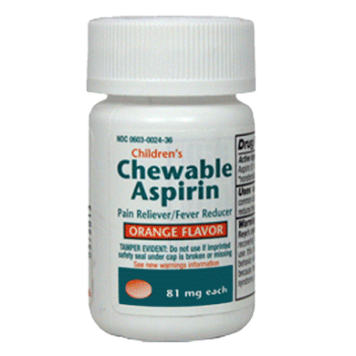 If the victim is over 18 years of age and does not have these health conditions and is able to chew and swallow, he may take 1 adult chewable non-coated aspirin or 2 low-dose chewable baby aspirin (up to 325 mg total). Caution the victim to chew aspirin completely before swallowing.